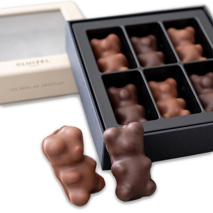 今パリで人気のギモーヴベア。ギモーヴに63%のダークチョコレート、39%ミルクチョコレートでコーティング。かわいいくまの形をしたふんわりギモーヴとクリスプなチョコレートの食感がおいしさを際立てます。